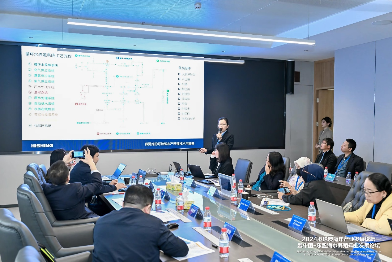 技術總監(jiān)劉俊花女士在中國-東盟魚類養(yǎng)殖可持續(xù)發(fā)展合作論壇做《工業(yè)化水產(chǎn)養(yǎng)殖裝備及應用》主題報告。