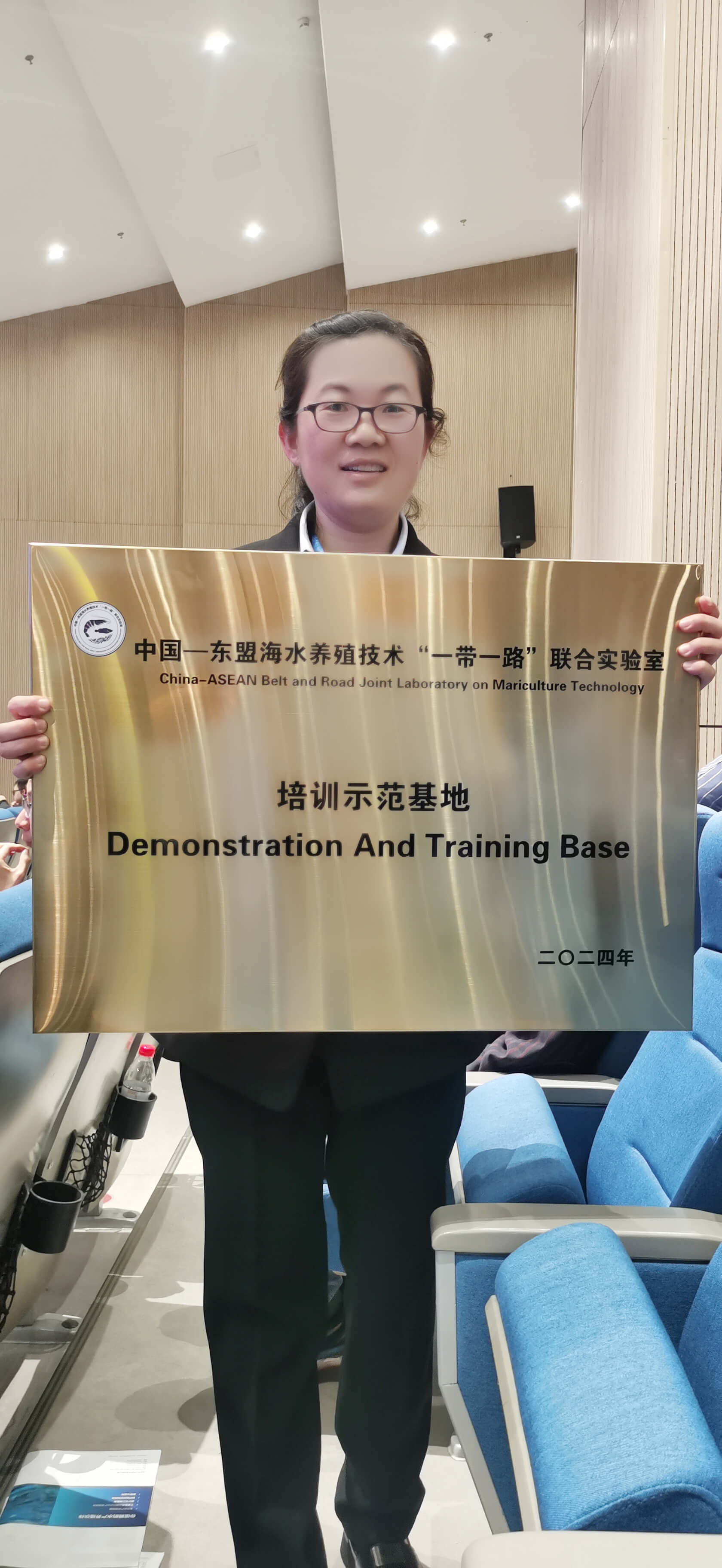 技術總監(jiān)劉俊花女士參加中國-東盟海水養(yǎng)殖技術“一帶一路”'聯(lián)合實驗室培訓示范基地授牌儀式。